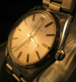 Rolex offered this Swiss watch in white gold, with a pink mother-of-pearl dial with a matching pink band. They also offered it in green, yellow and blue. I always thought this was a really sexy watch (for girls ;-)